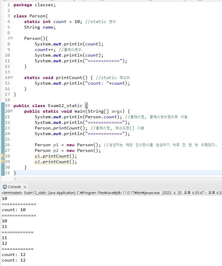 | static 메소드 instance 메소드 (0) | 2023.04.25 |