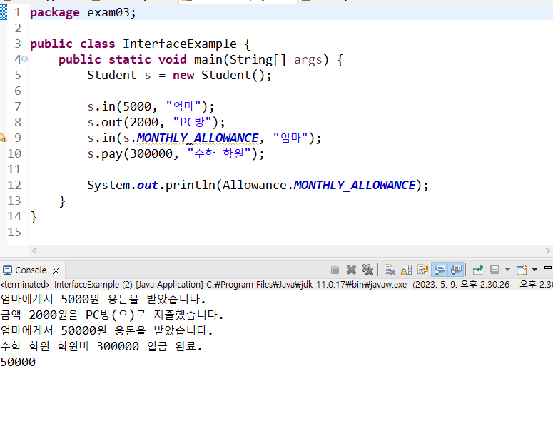 | 인터페이스의 여러 메소드 (0) | 2023.05.09 |