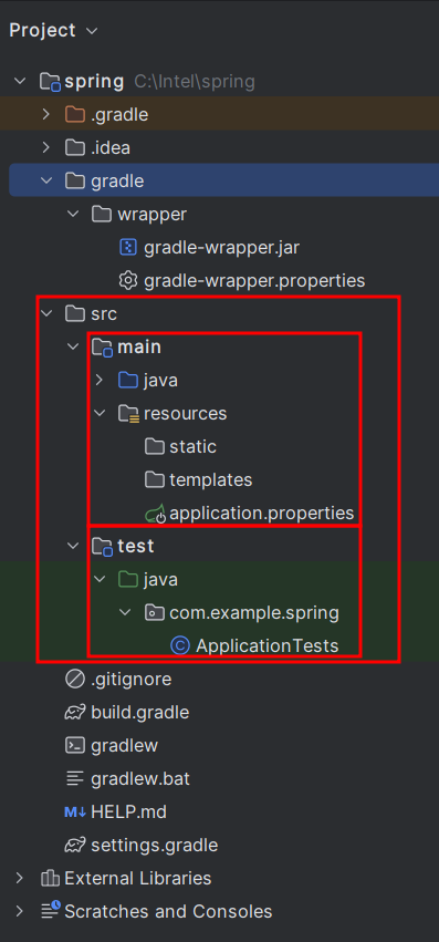 maven이나 gradle이나 src에 main과 test라는 폴더가 기본적으로 나누어져 있다.